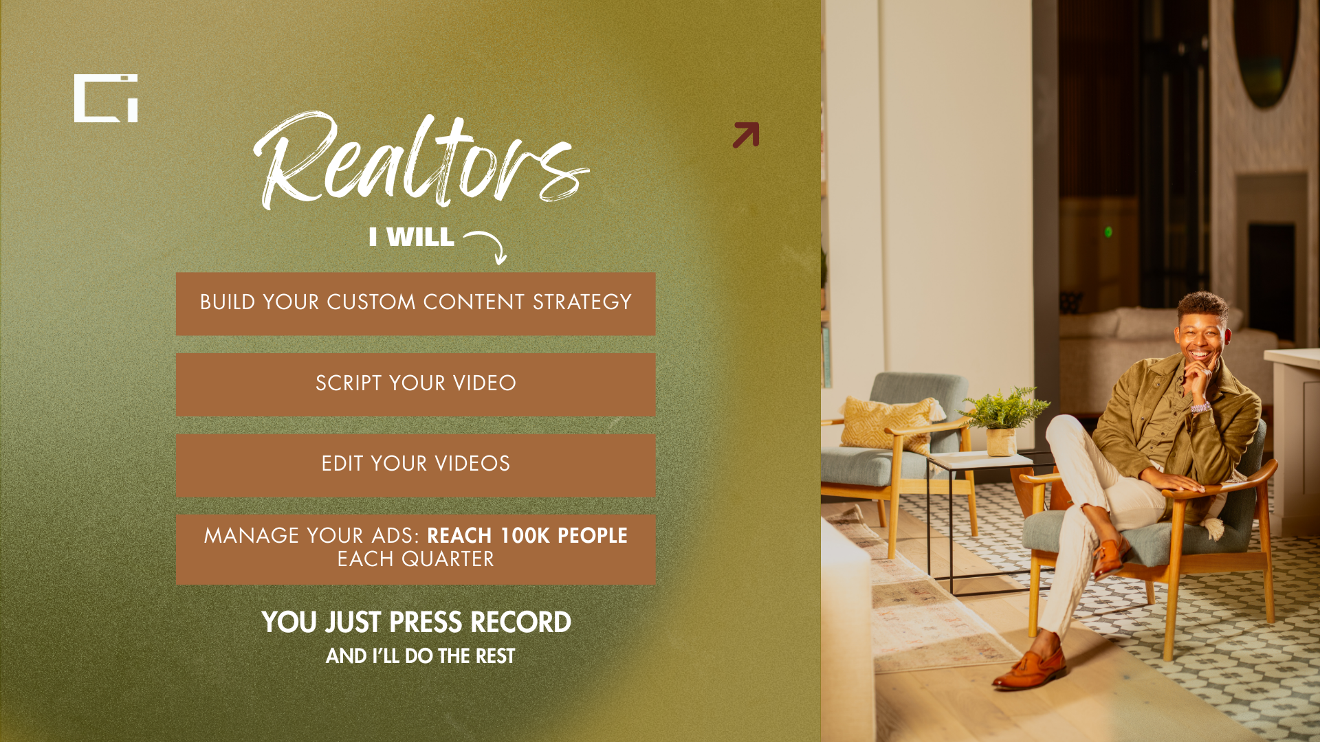We help Realtors 2X their GCI by building a personal brand that reaches 100,000 people locally in 90 days using Instagram ads.